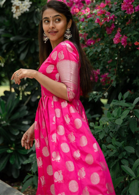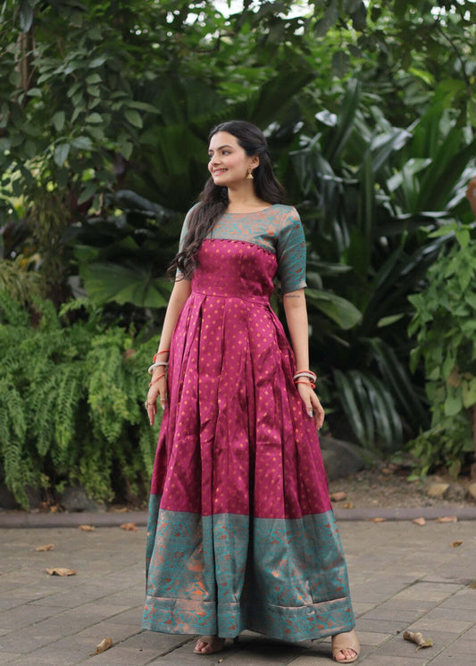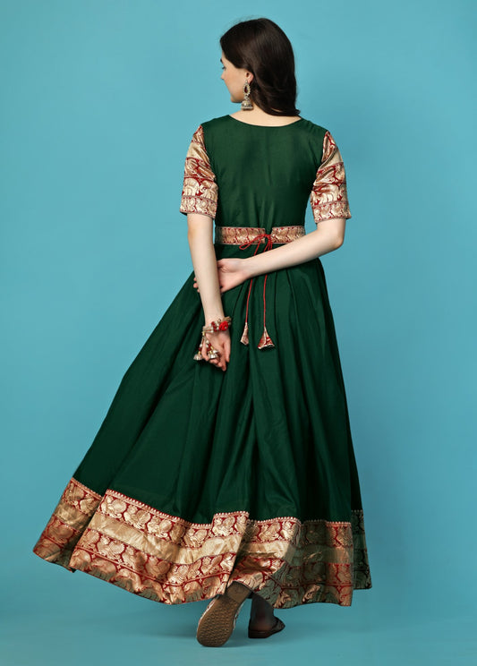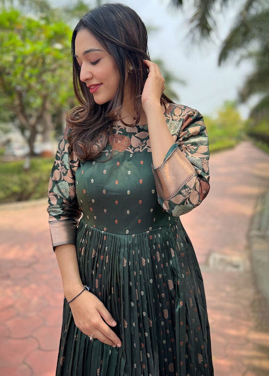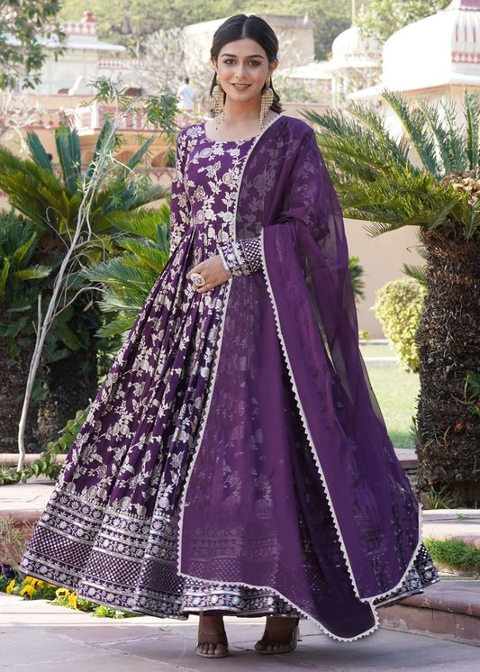Women Woven, Embroidered Art Silk Stitched Anarkali Gown With Dupatta