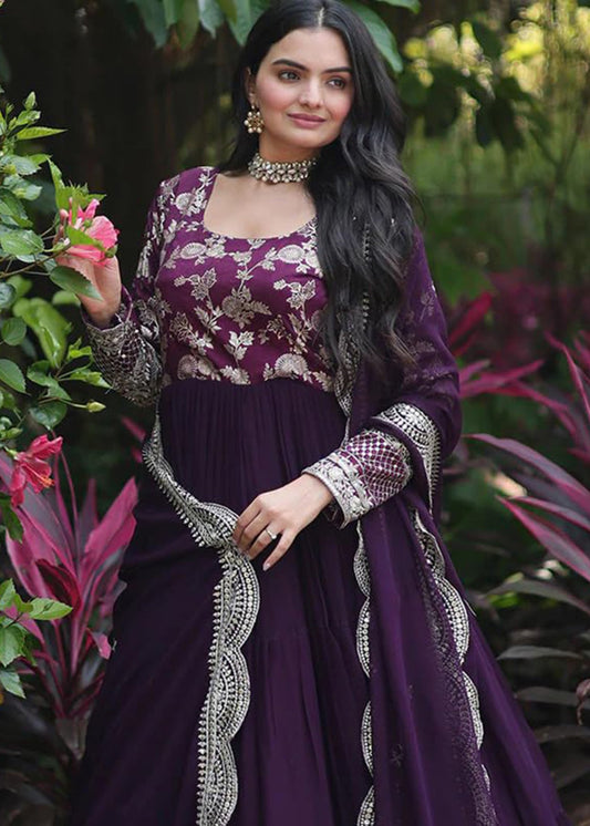 Embroidered Georgette Stitched Anarkali Gown With Dupatta