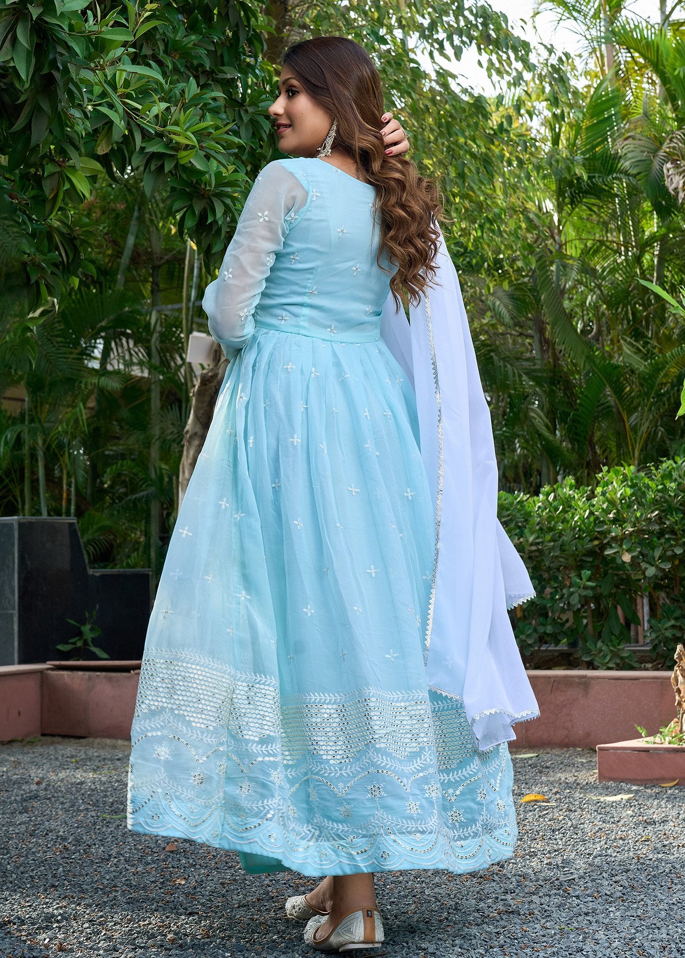 Embroidered Georgette Stitched Anarkali Gown With Dupatta